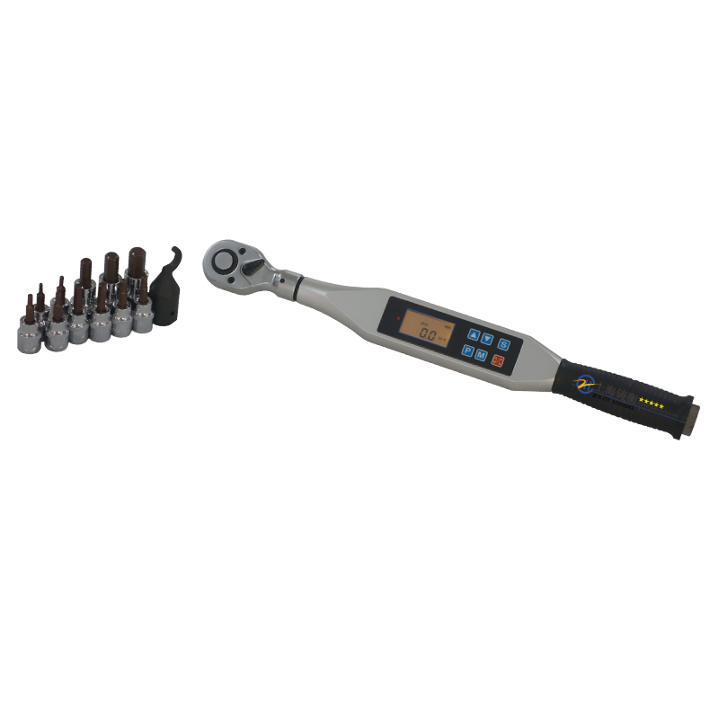 數(shù)顯扳手是一種帶有扭矩測量機構的擰緊計量工具,它用于緊固螺栓和螺母,并能測出擰緊時的扭矩值,扭力扳手等級分為七個等級,等級越高精度就越低,鑄衡廠家生產的SGSX系列安裝M27高強螺栓數(shù)顯扳手精度等級為高精度1級,采用微處理器數(shù)字化處理技術,核心是應變計傳感器.該數(shù)顯扳手高精度求值,性能穩(wěn)定,耗電量小,使用方便,本司電子數(shù)字扭力扳手具有示值,峰值保持,預置報警,三種單位自動轉換,扳手頭可換,欠壓顯示,不使用時3分鐘自動斷電等功能.,其適用于汽車、摩托車、機械制造等行業(yè)的螺栓緊固檢測及控制等。頭部可另配開口頭、活動開口頭、勾頭、梅花頭、管鉗頭,外六角套筒、內六角套筒、套筒加長桿、特殊定制頭部等。